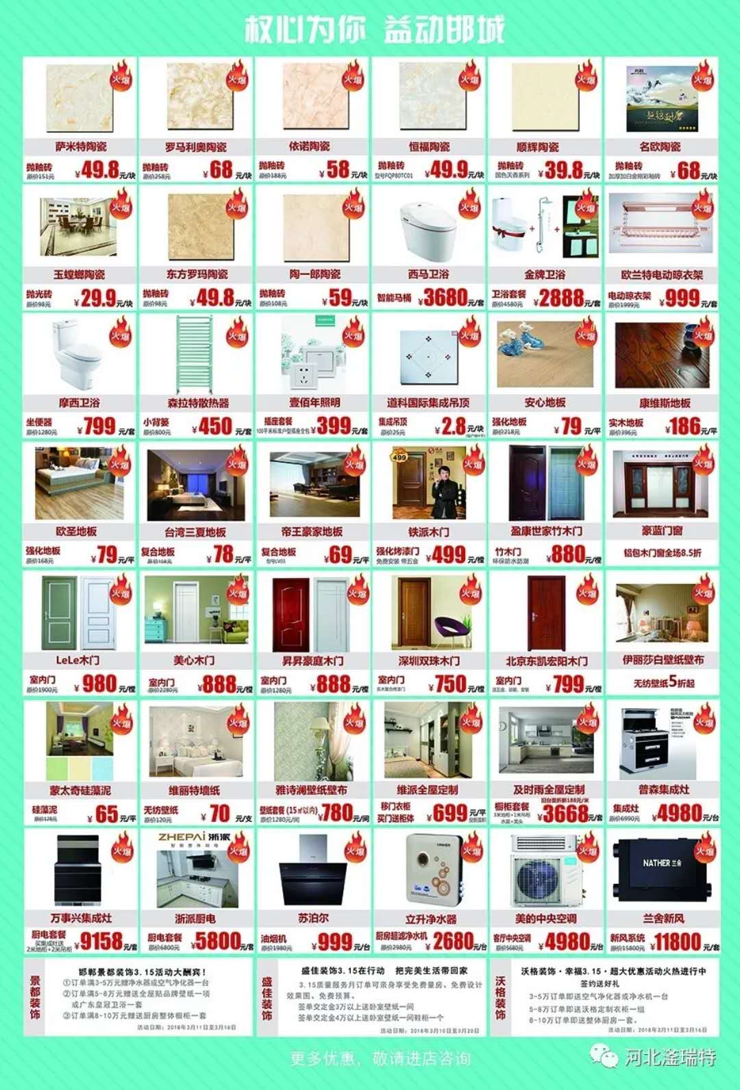 活動(dòng)期間,凡在滏瑞特時(shí)代廣場(chǎng)建材類消費(fèi)滿指定金額即有好禮相贈(zèng)。